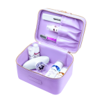 В кейсе предусмотрена двухуровневая система организации, поэтому разноразмерные флаконы и бьюти-приборы обеспечены надёжной сохранностью. На каждом уровне имеется отдельный карман. При откидывании крышки он фиксирует некоторые из аксессуаров — косметику, резинки и кисти для макияжа.